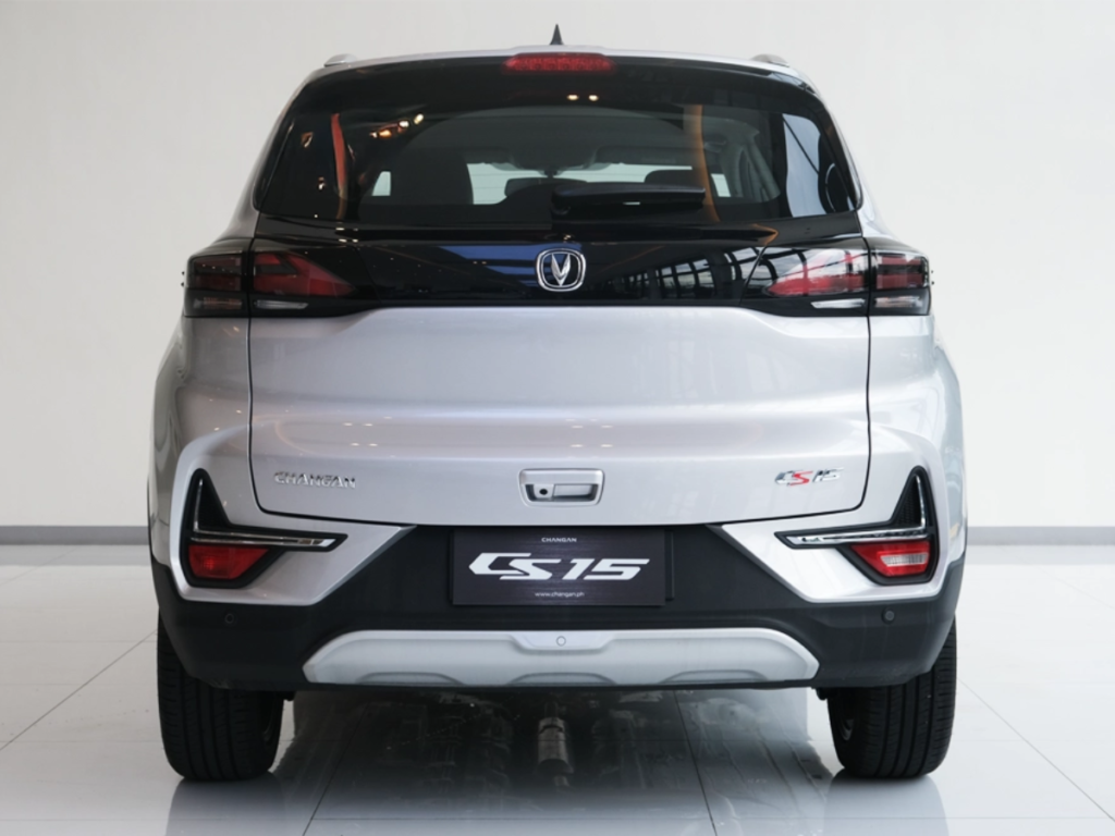 Exterior revisions are most noticeable at the front, where the CS15 adopts a redesigned rhombic grille featuring a diamond-pattern insert. The headlamp layout carries over, retaining halogen automatic headlights with LED daytime running lights. Along the sides, the refreshed model is distinguished by new 17-inch gunmetal alloy wheels, while the body lines, roof rails, and mirror trims remain unchanged. The rear design is carried over as well, with LED taillights, a large bumper with faux skid plate styling, and an integrated rear spoiler.