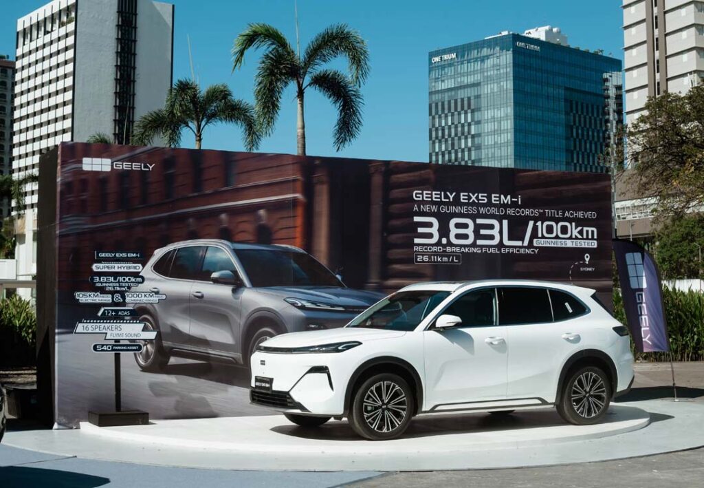 Geely said the EX5 EM-i addresses demand for lower fuel costs and flexible driving range. The company cited a Guinness World Record result during a drive from Sydney to Melbourne, where the model recorded 3.83 liters per 100 kilometers.