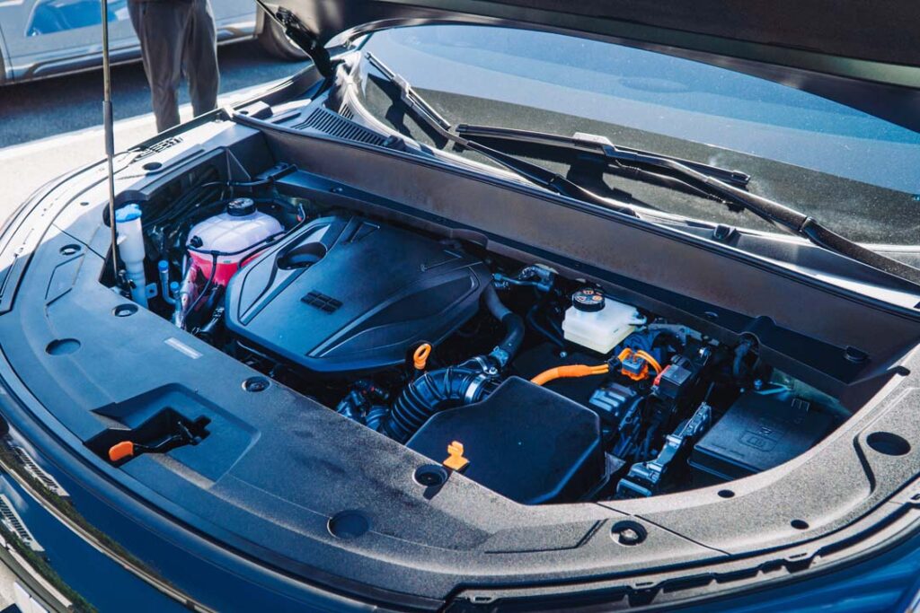 Safety features include a triple-power system with backup through dual motors and an engine. The platform uses an oil-electric isolation design and a reinforced body structure. Six airbags come standard.