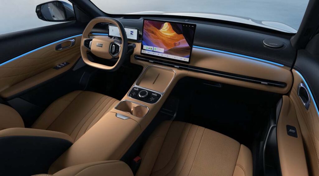 The model uses Geely’s Global Intelligent Electric Architecture and runs on the EM-i Super Hybrid System. It pairs a 1.5-liter engine rated at 73 kW with an electric motor that produces 160 kW and 262 Nm of torque. The system reaches an engine thermal efficiency of 46.5 percent and a combined system efficiency of up to 92.5 percent.