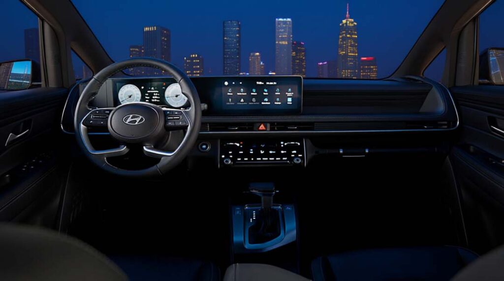 Inside, Hyundai redesigned the dashboard to integrate dual 10.25-inch displays — one for the driver and another for the infotainment system — both supporting wireless Apple CarPlay and Android Auto. A wireless charger, automatic climate control, and mood lighting add to the upgraded feel. The cabin retains its reputation for spaciousness, with a 2,780 mm wheelbase that continues to lead its class.