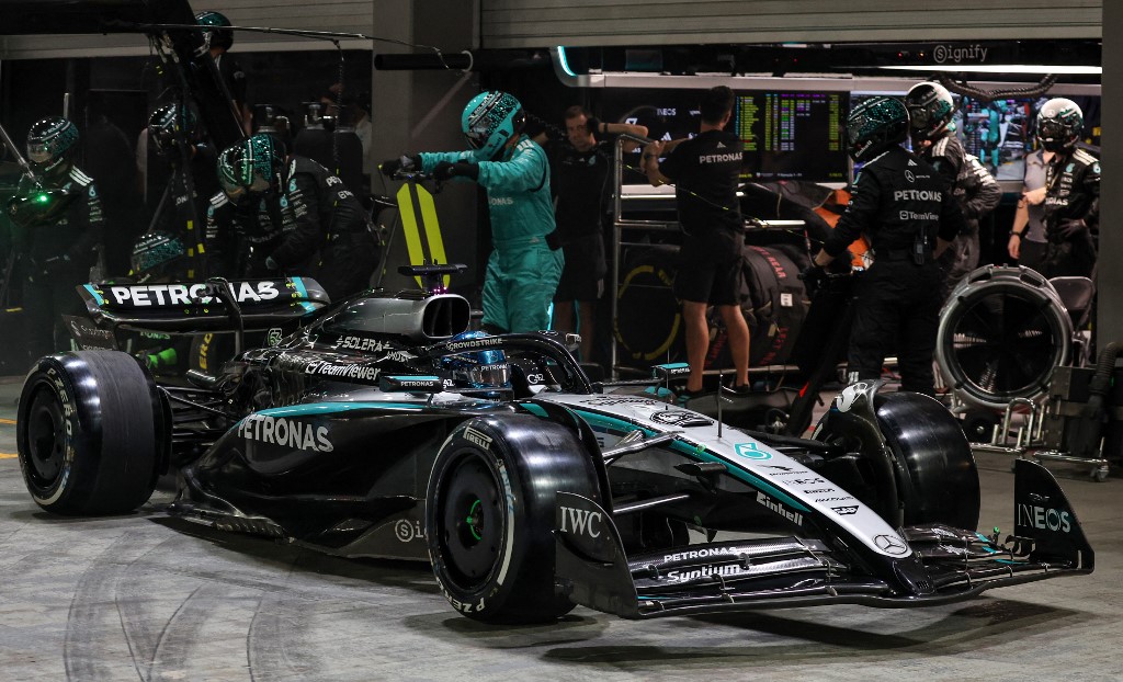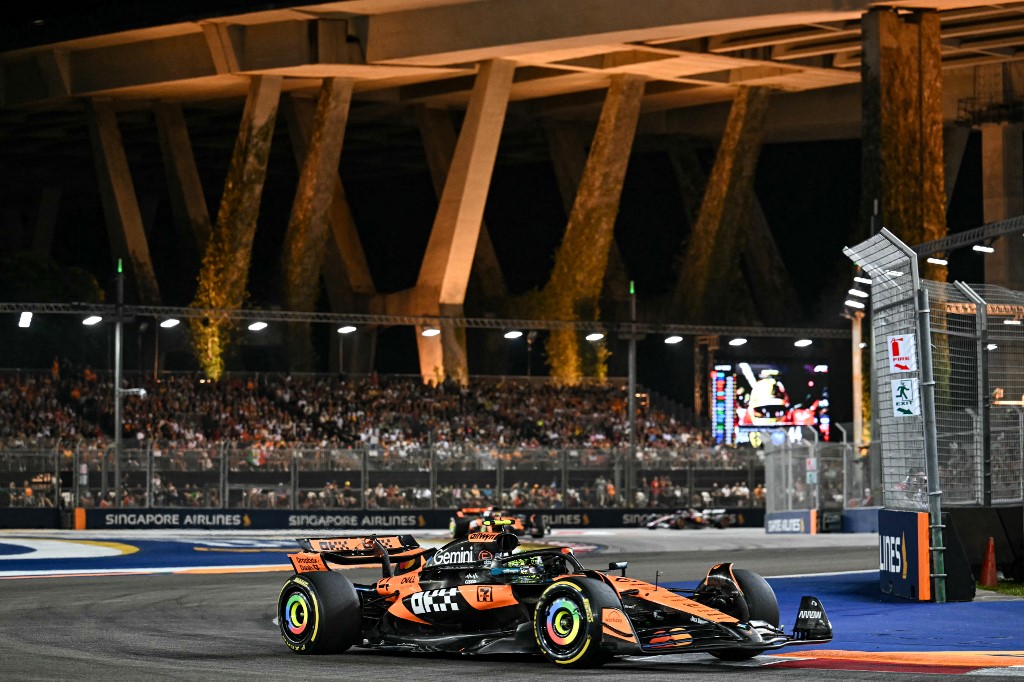 George Russell stormed to victory at the Singapore Grand Prix on Sunday night, delivering Mercedes its first win of the season as McLaren sealed the Formula One constructors’ championship with six rounds to spare.
