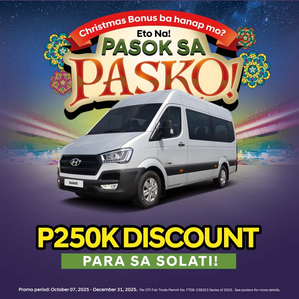 The Hyundai Solati is also part of the Christmas push with as much as ₱250,000 off the purchase price. Marketed for executive trips, family outings, and premium shuttle work, the Solati offers a more upscale cabin for passengers who expect a first class feel on the road.