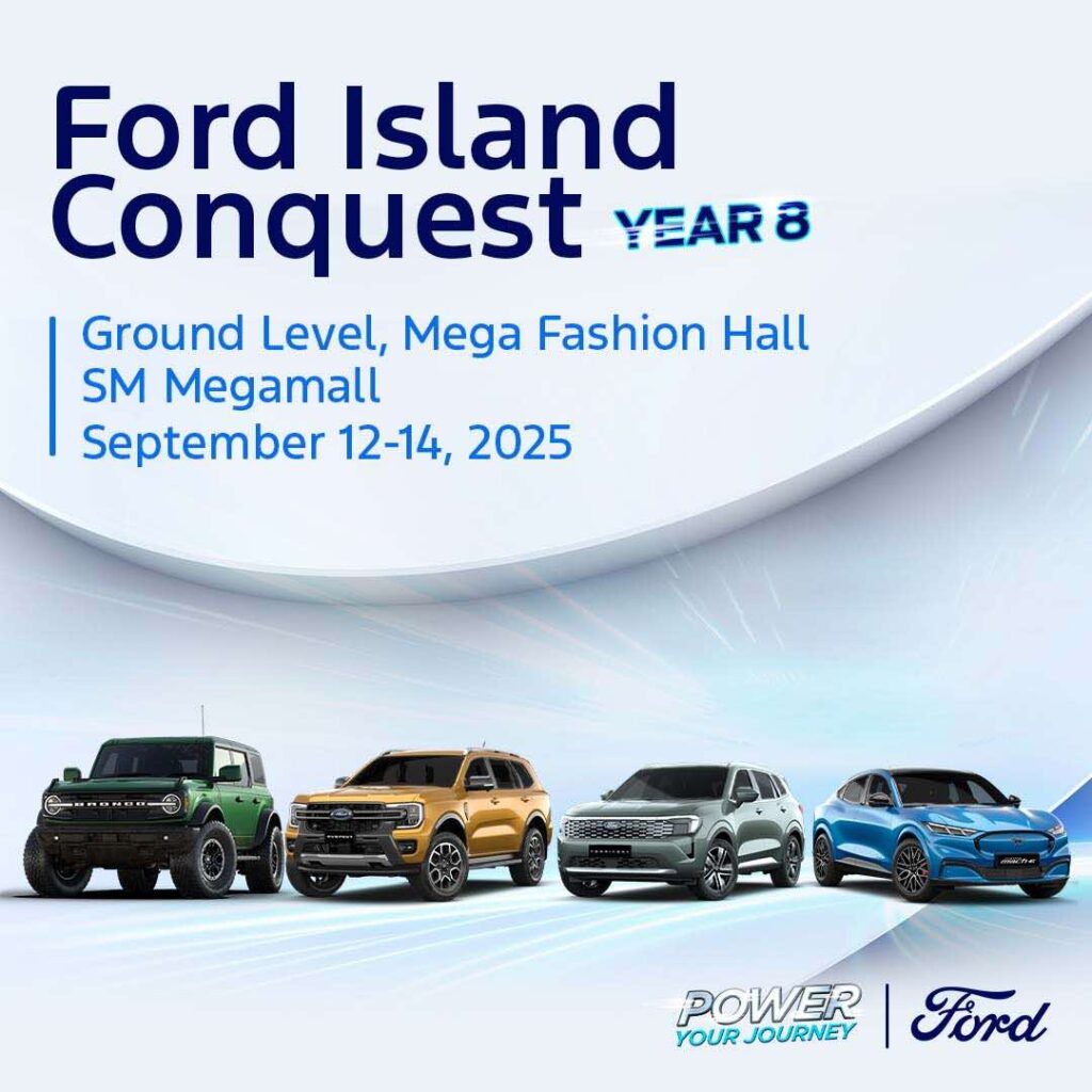 Ford Philippines is bringing Ford Island Conquest to SM Megamall on September 12 to 14, 2025, with the new Everest Wildtrak as the main attraction. The 8-vehicle showcase will run from 10:00 a.m. to 10:00 p.m. at the Ground Floor, Mega Fashion Hall. Admission is free.