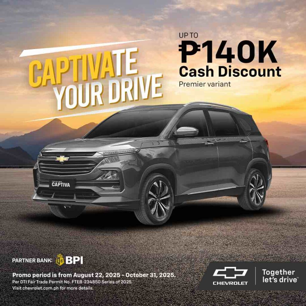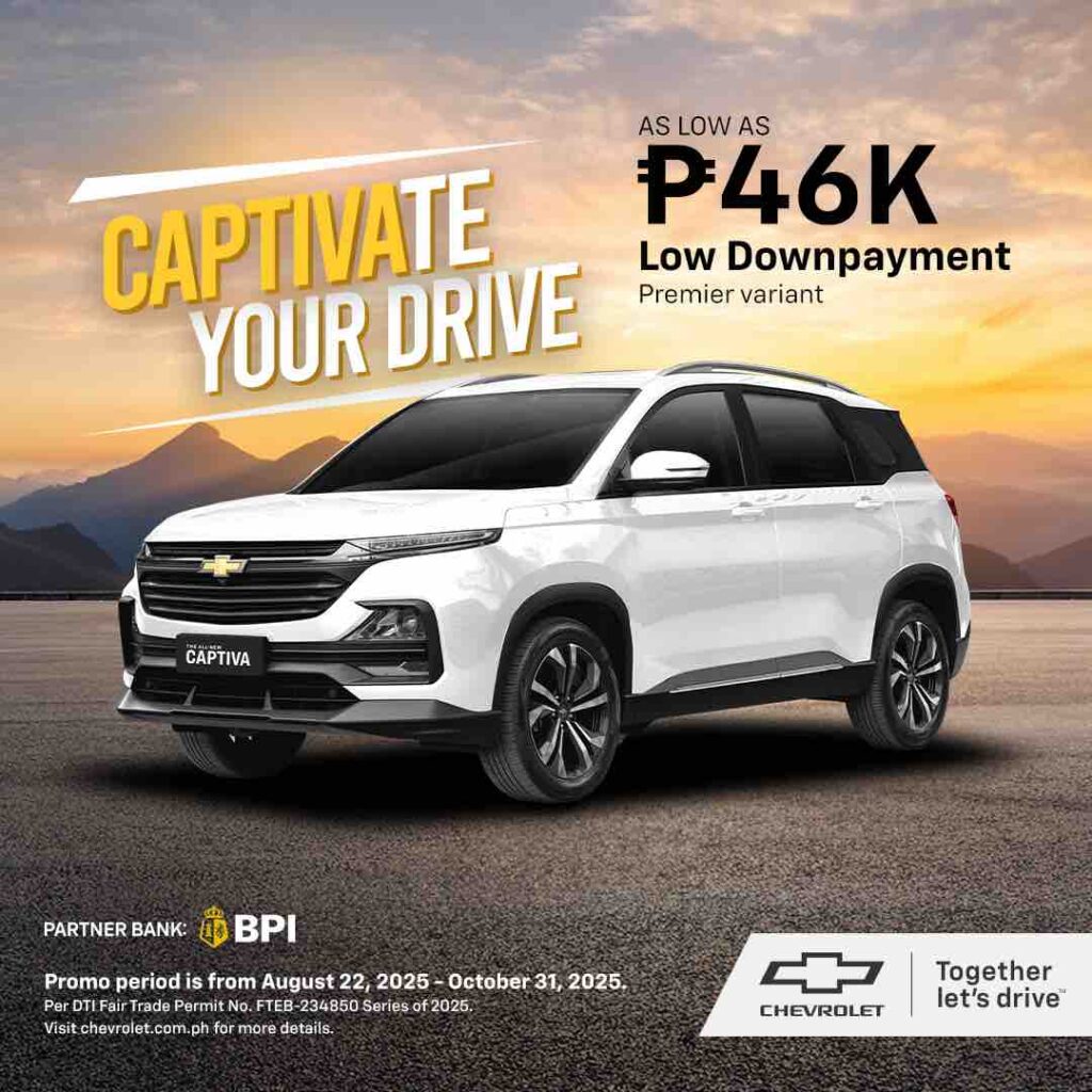 Chevrolet Philippines teams up with BPI Auto Loan to roll out an exclusive Captiva deal that’s built for growing families. From August 22 to October 31, 2025, buyers can pick either up to ₱140,000 in savings or a low all-in down payment of ₱46,000 at 20 percent DP, available nationwide through authorized dealers.