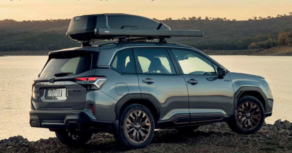 Design-wise, the new Forester looks sharper and cleaner but remains recognizable. The Philippine-spec 2.5 i-S e-Boxer Hybrid wears 19-inch alloys, roof rails, and C-shaped LED headlights with cornering lamps. A panoramic sunroof and a hands-free tailgate are standard. A Forester-exclusive shade, River Rock Pearl, joins the color palette.